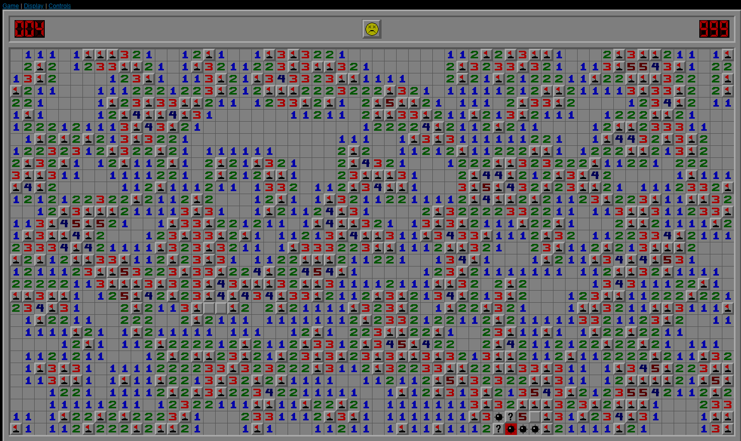 If you can logically prove a mine must be in a location its probability must be 100. Minesweeper can be played two ways. Play free online minesweeper in javascript play the classic game in beginner intermediate and expert modes. Lines 16 columns 30 mines 99 new game.