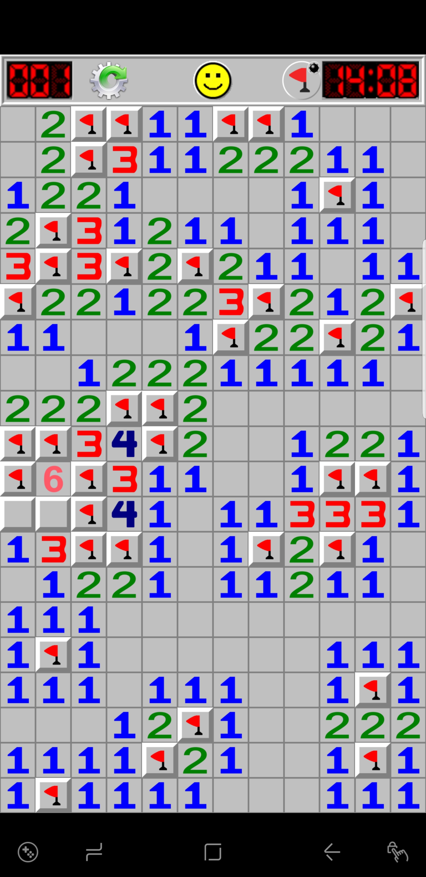 If not all the surrounding squares are automatically opened. Flag where you think a mine may be. Clear the mines but you may have to take a calculated risk. Each number tells you how many of the surrounding 8 tiles up down left right or diagonal are mines.